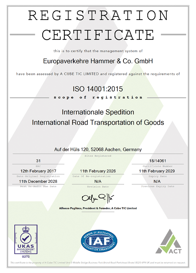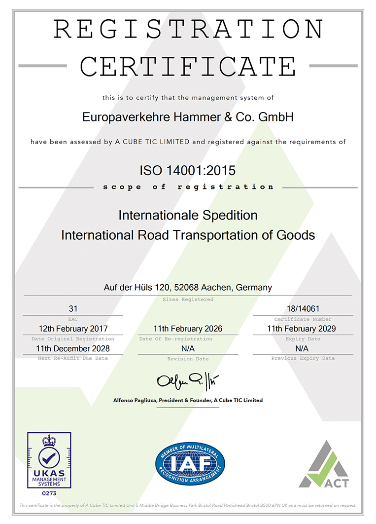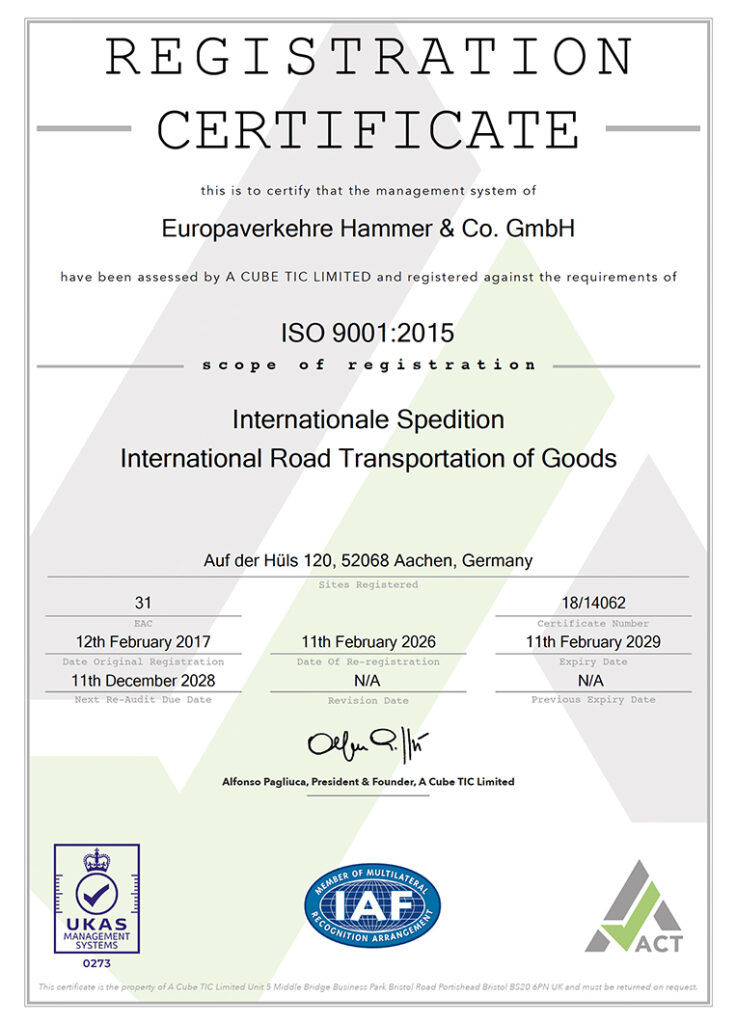 Gegründet im Jahr 1989 als Europaverkehre Hammer & Co. GmbH in Aachen gegründet, schreiben wir bis heute eine spannende Erfolgs- und Wachstumsgeschichte. Besonders stolz sind wir darauf, die Begeisterung unserer Familie für Mobilität, Technik und Nachhaltigkeit nun in der dritten Generation fortsetzen zu können.
